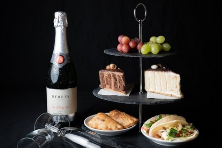 Zusatzoption 2 (Étagère La Gordita): Eintritt + 1 festen Sitzplatz von Beginn an, an einem Tisch mit anderen Gästen sowie stilvoll angerichteten Köstlichkeiten auf einer Etagère