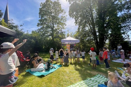 Ein besonderes Highlight erwartet die Kinder um 16 Uhr: Martin Pfeiffer bringt mit seinem Mitmach-Konzert den Pfarrgarten zum Klingen. Gemeinsam mit den Kindern singt er bekannte Mitmach- und Bewegungslieder – Mitsingen, Tanzen und Mitmachen ausdrücklich erwünscht.